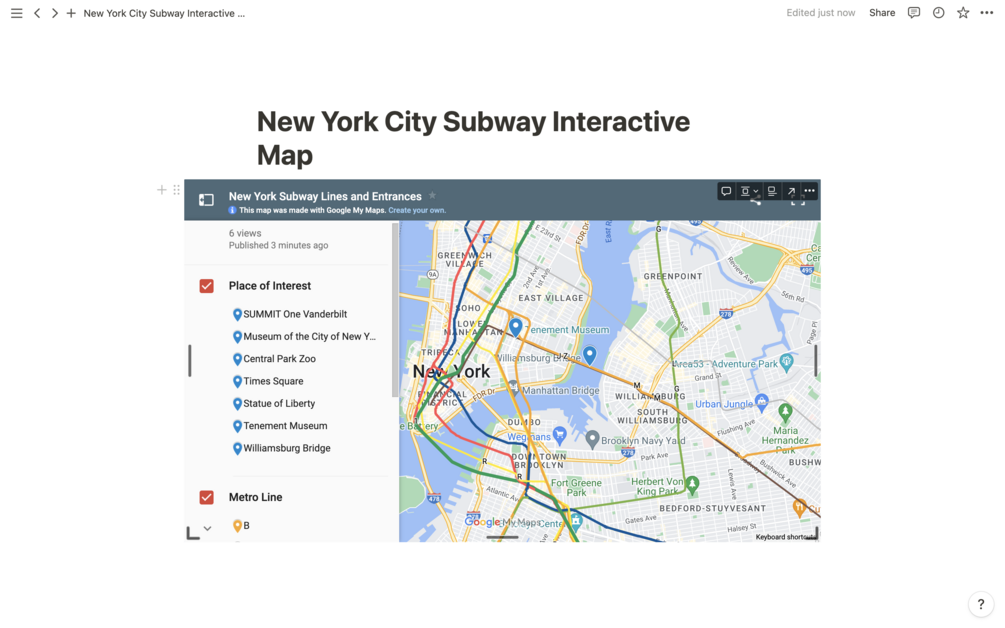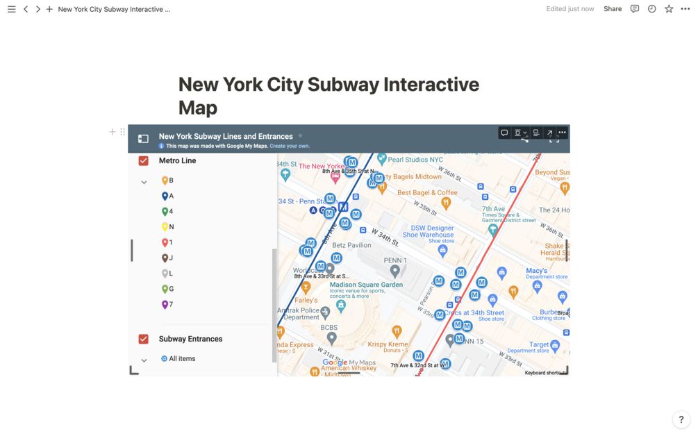 It is New York Subway map with entrances and lines. It also has a place of interest.